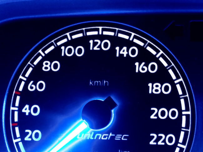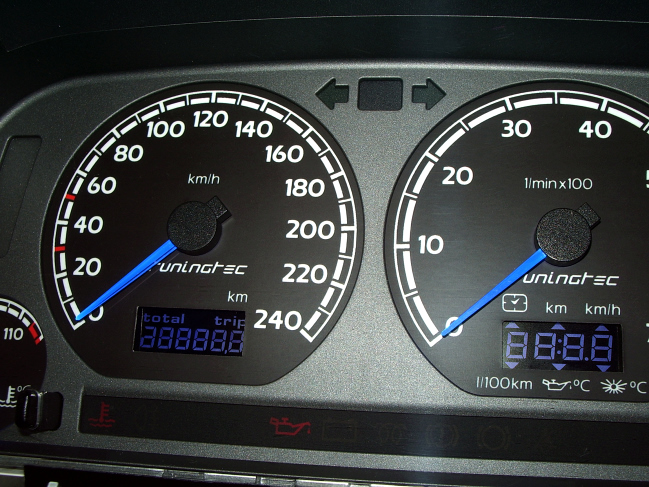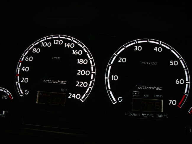 schwarze Tachoscheiben mit weiss durchleuchteter Skalierung